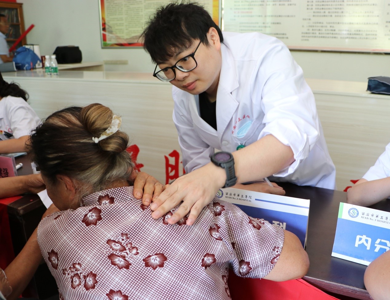 8月15日上午,在商州区区委以及pg娱乐电子游戏官网入口驻村干部陈伟星、陈小刚的协调帮助下,义诊专家借助村委会办公室搭好工作台。村民们反响热烈、积极响应。专家们认真为乡亲检查诊断,耐心答疑指导,对检查中发现的问题提出治疗意见,热情宣讲疾病预防和健康保健知识。在义诊的过程中,医务工作人员量血压、测血糖,检查诊断,专业示范、耐心讲解。