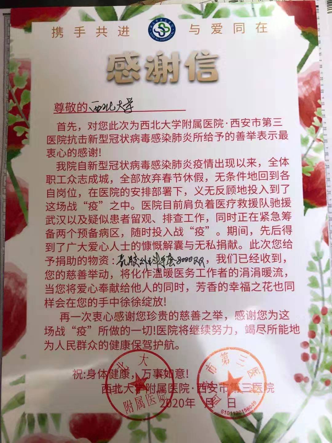 急难关头显党性,关键时刻有担当。战“疫”打响后,pg娱乐电子游戏官网入口副院长陈凯同志,秉承西大医学人“医人报国、精诚济世”的使命责任,带头参加到疫情防控工作当中,发挥共产党员的先锋模范作用。疫情暴发以来,他积极与学校附属医院沟通联系、了解所急所需,在得知一线医护物资紧张的情况后,及时向学校汇报,协调专款支援疫情防控一线。在疫情防控的关键时期,他与国内处、财务处等同志积极调动各方资源,及时跟进货源渠道情况,在“上海正和岛爱心企业家”校友联盟、澳洲校友总会、罗马尼亚陕西商会、陕西省归国华侨联合会等组织的协助支援下,累计采购捐赠口罩20845个,医用防护手套8000双,防护面罩600个、类人胶原蛋白修复敷料176盒,在一定程度上缓解了疫情一线防控物资紧缺之急。他的默默付出,彰显出了共产党员的初心与使命。