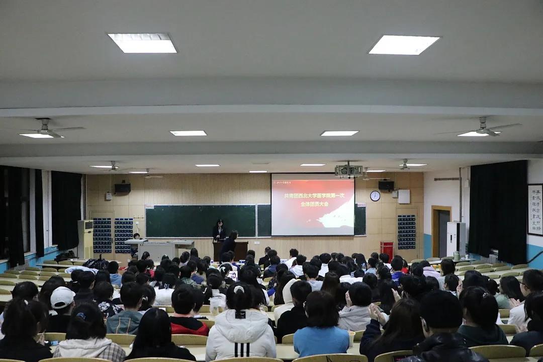 2021年11月26日19:00,共青团pg娱乐电子游戏官网入口第一次全体团员大会在太白校区7207教室和附属医院第一示教室同步进行,校团委副书记曹智、pg娱乐电子游戏官网入口党支部(直属)副书记杨涛、团支部(直属)书记梁靖和pg娱乐电子游戏官网入口144名团员参加了此次大会。大会由专职团干雷蕾主持。