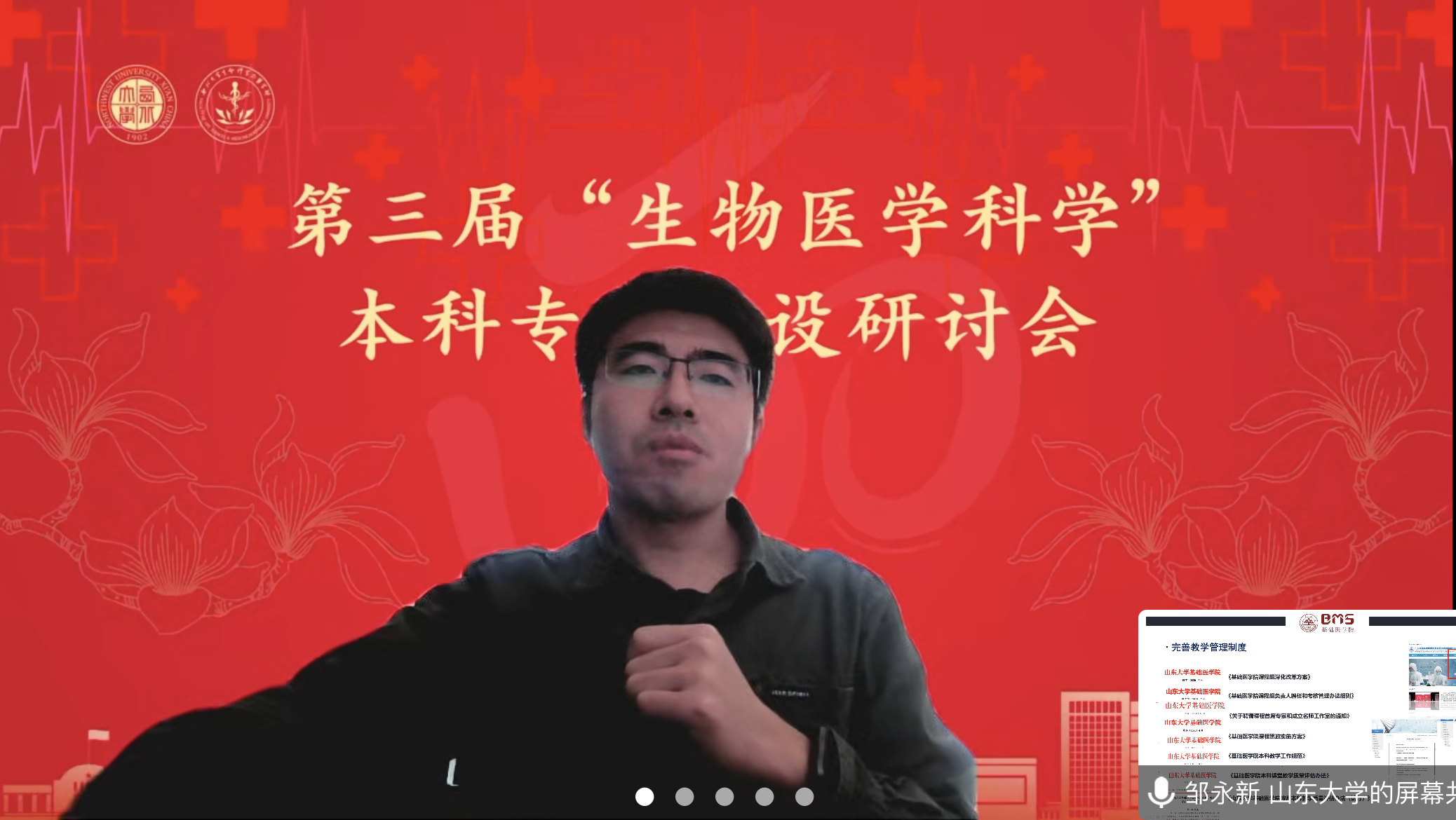 2022年12月11日,由全国生物医学科学专业虚拟教研室主办、pg娱乐电子游戏官网入口承办的第三届“生物医学科学”本科专业建设研讨会成功举办。由于受疫情的影响,本次研讨会采用线上会议、全程直播的方式举行。来自上海交通大学、汕头大学、南方科技大学、山东大学、吉林大学、蚌埠pg娱乐电子游戏官网入口、pg娱乐电子游戏官网入口等学校的专家,围绕大会议题进行了深入的交流和探讨。开幕式由pg娱乐电子游戏官网入口李方民副院长主持,赵钢院长致欢迎辞。汇报和交流环节由王昊教授、李恩民教授、高明清教授联合主持。
