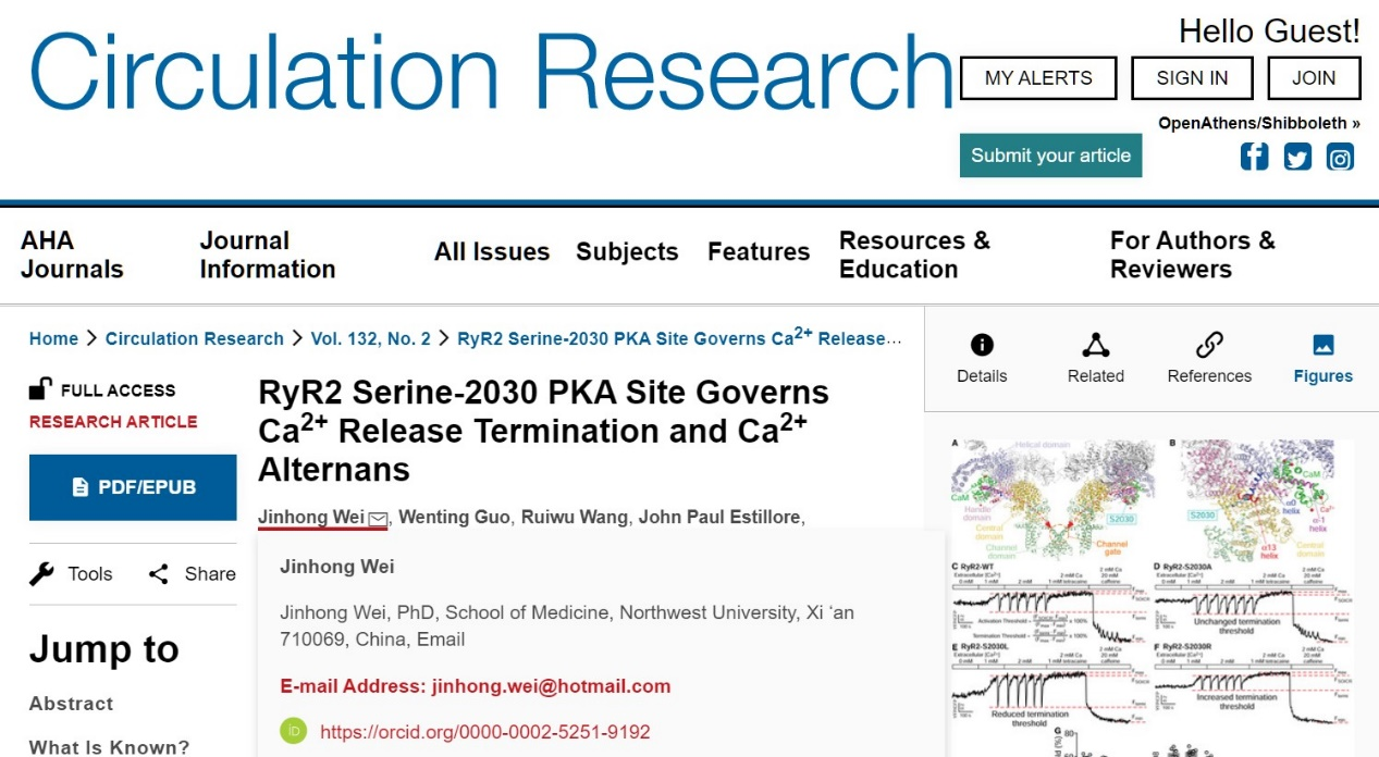 近日,pg娱乐电子游戏官网入口魏金红副教授与加拿大卡尔加里大学S.R.WayneChen教授在国际心血管领域顶级期刊CirculationResearch(IF=23.213)在线发表了题为“RyR2Serine-2030PKASiteGovernsCa2+ReleaseTerminationandCa2+Alternans”的研究论文,该研究运用基因突变动物与分子细胞手段,阐明了RyR2钙释放终止的PKA调节机制。同时,该研究发现PKA依赖的RyR2S2030磷酸化位点是心脏Ca2+释放终止和Ca2+瞬变交替的主要决定因素。此项研究有助于揭示引起心律失常等心脏疾病发生机制,并为开发新型干预方法提供理论基础。