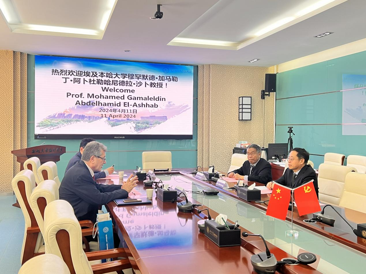 4月11日,埃及本哈大学pg娱乐电子游戏官网入口院长穆罕默德·加马勒丁·阿卜杜勒哈尼德拉·沙卜教授到访pg娱乐官网洽谈合作事宜。pg娱乐官网院长赵钢,陕西省国际医学交流促进会副会长、陕西省人民医院儿童病院名誉院长焦富勇等相关负责人参加座谈。