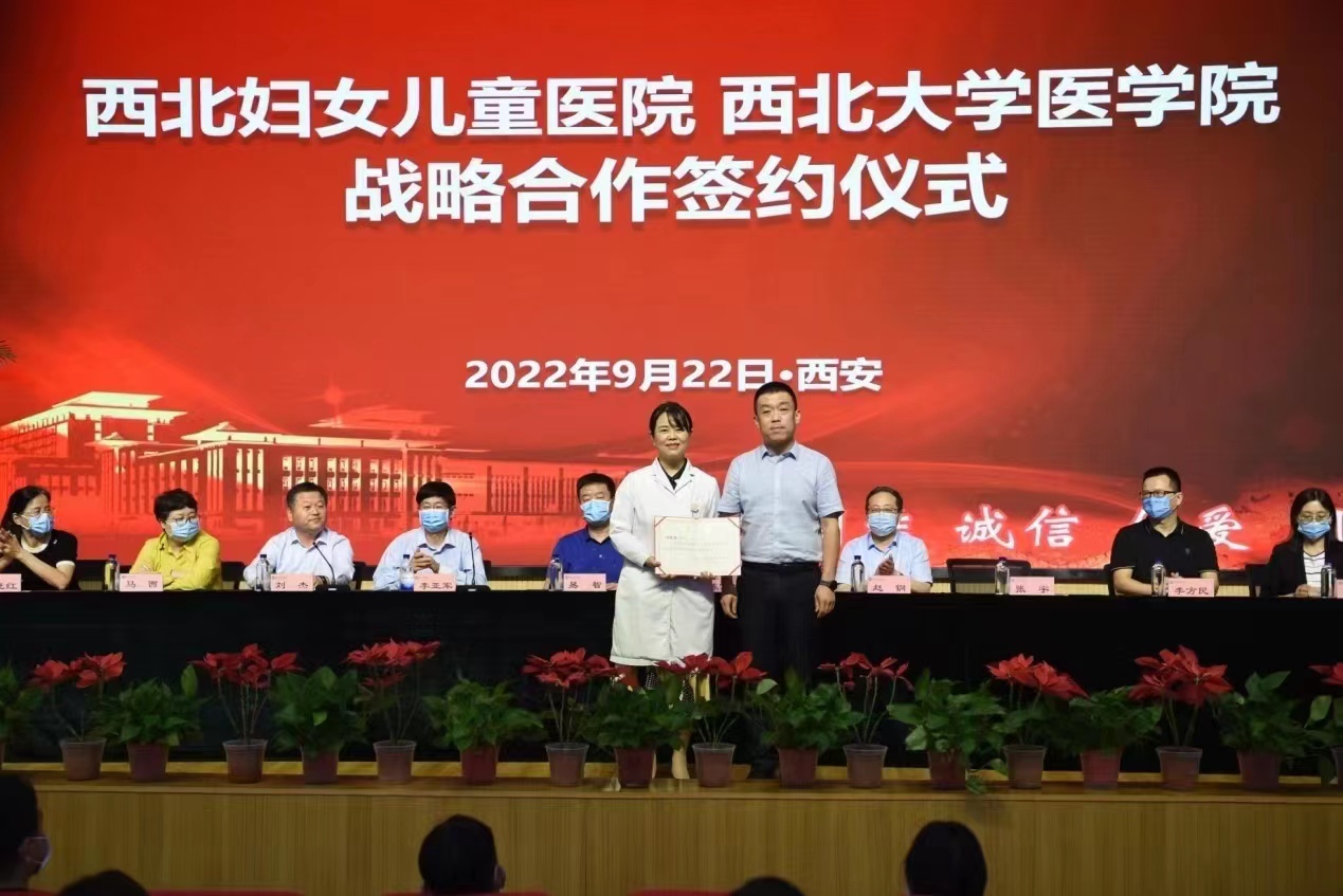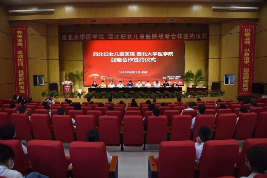 9月22日下午,pg娱乐电子游戏官网入口 西北妇女儿童医院战略合作签约仪式在西北妇女儿童医院学术报告厅举行。pg娱乐电子游戏官网入口党委常委、副校长、生命科学与医学部主任陈富林、pg娱乐电子游戏官网入口书记张宇、院长赵钢、副院长李方民,西北妇女儿童医院党委书记易智、党委副书记、院长李亚军、党委副书记马西、纪委书记王晓红,医院各职能科室负责人、教研室主任、科研组长、护士长等100余人共同见证签约。仪式由西北妇女儿童医院副院长刘杰主持。
