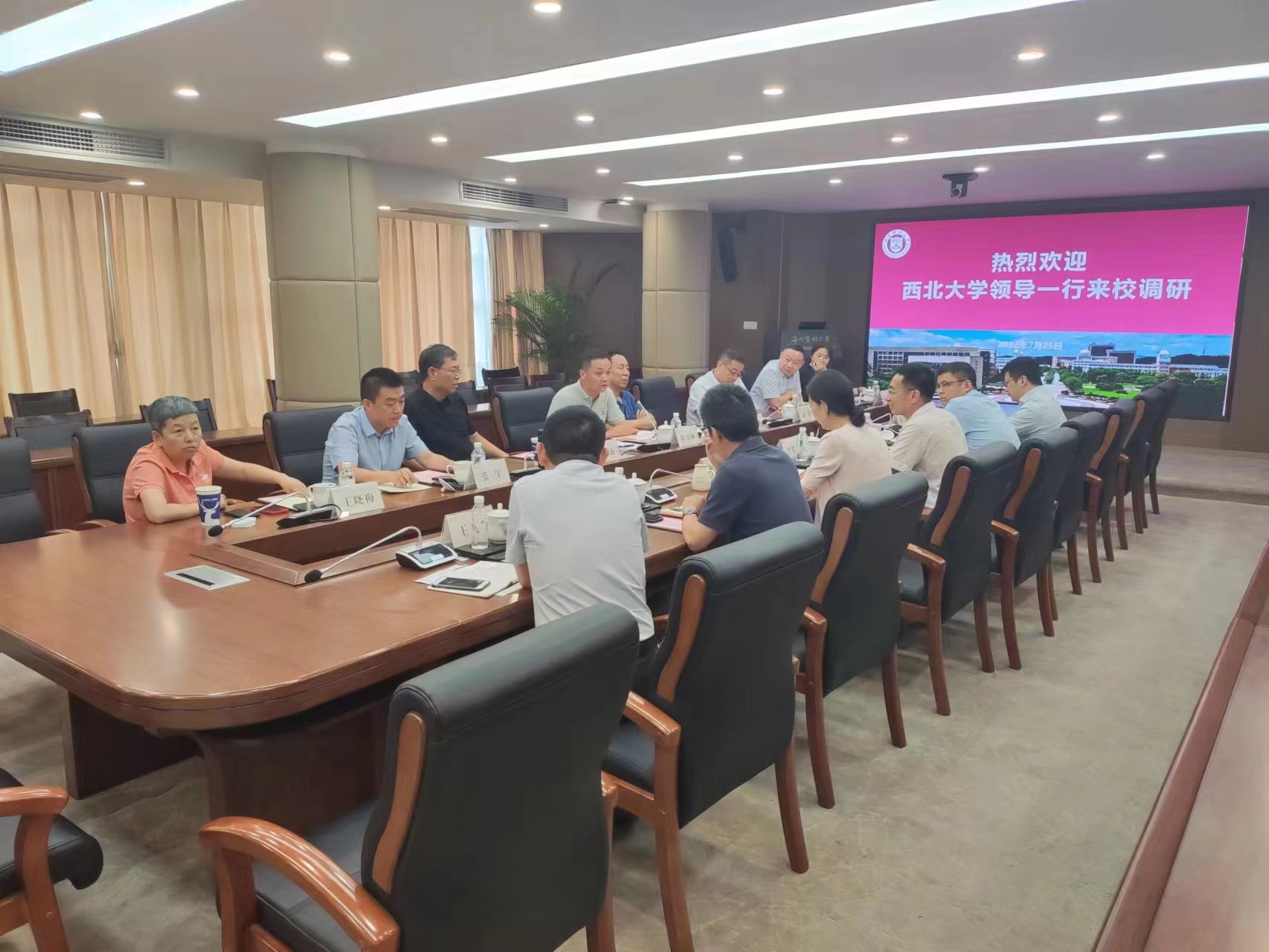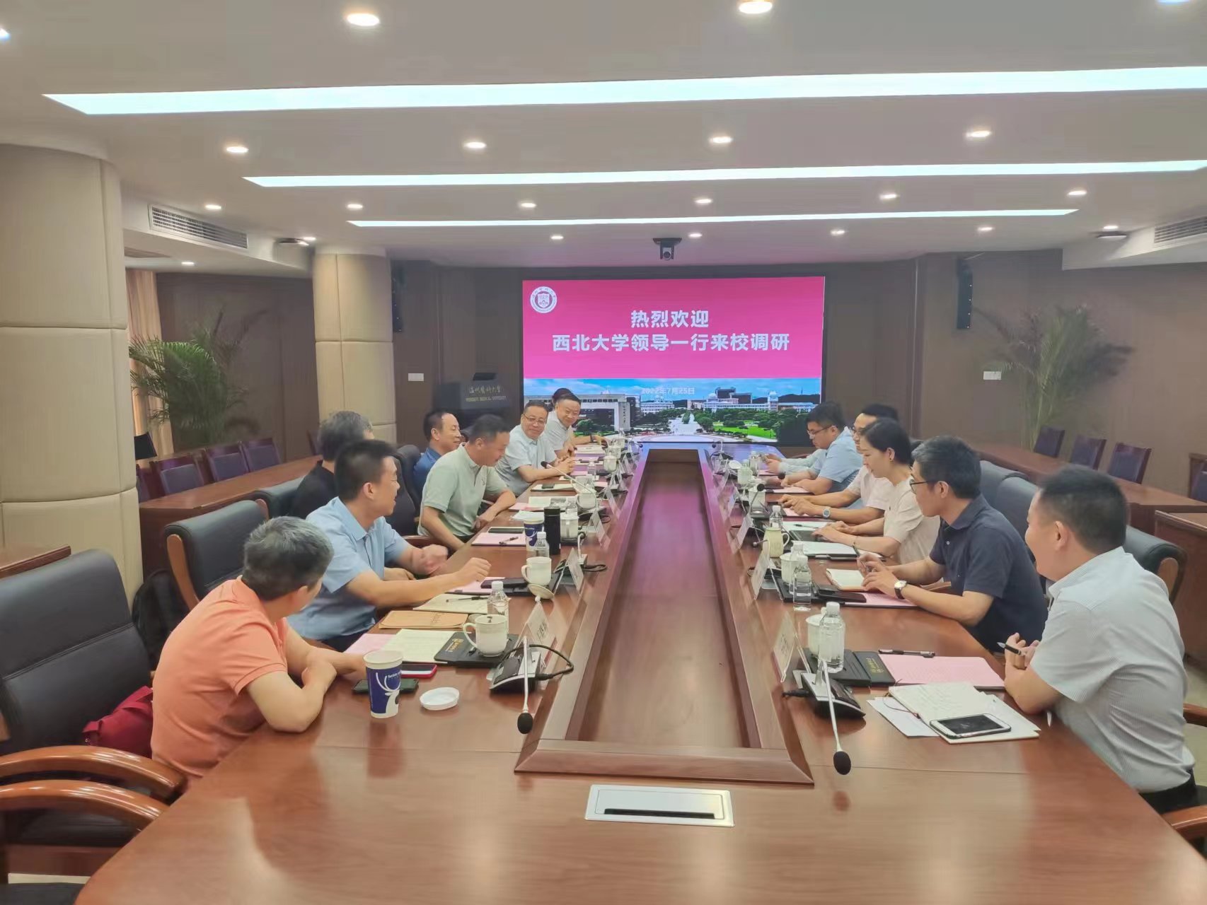 7月26日,校党委常委、副校长,生命科学与医学部主任陈富林带队赴温州医科大学参观访问。温州医科大学校长李校堃院士,校党委委员、副校长曹建明,温州医科大学相关单位负责人参加座谈。我校pg娱乐电子游戏官网入口、附属第一医院和西安市第九医院等单位负责人陪同访问。