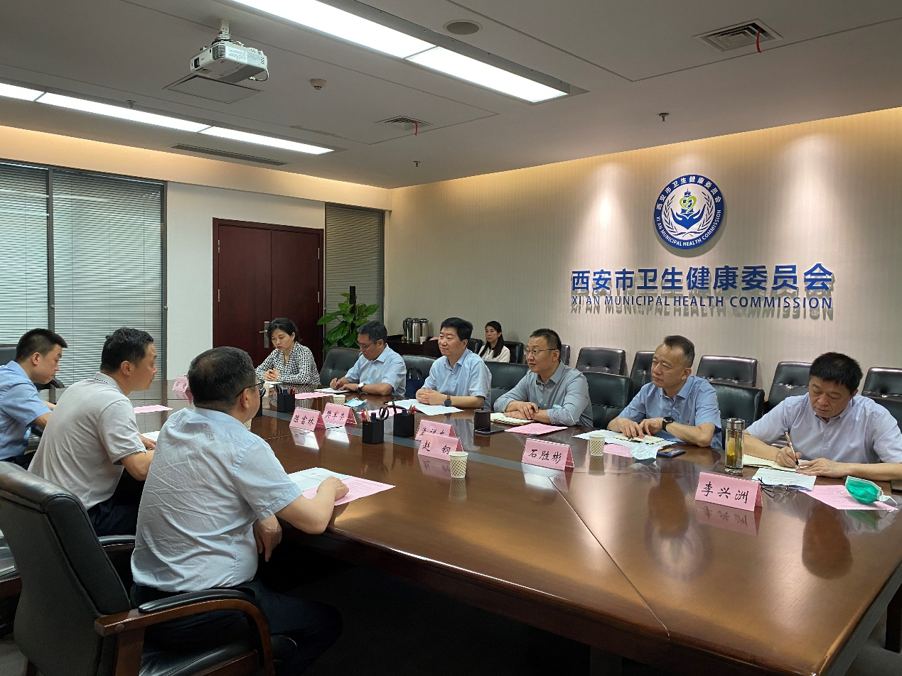 5月27日,校党委常委、副校长、生命科学与医学部主任陈富林一行赴西安市卫生健康委,就医学教育建设工作进行座谈交流。西安市卫生健康委党委书记樊军荣、市保健局局长孟祥东,pg娱乐电子游戏官网入口院长赵钢、书记张宇及双方相关部门、附属医院负责人参加座谈。