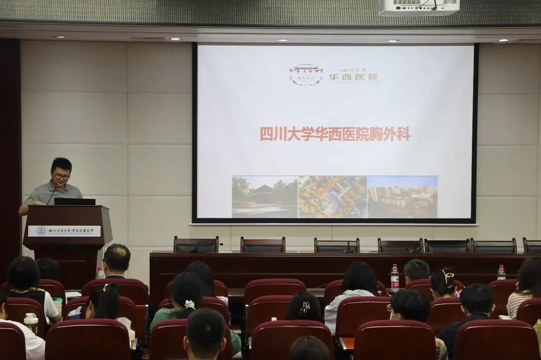 刘成武副教授向在场师生介绍了华西医院临床医学研究生培养目标及举措,并重点介绍胸外科科室概况、亚专业分布及导师相关科研成果。