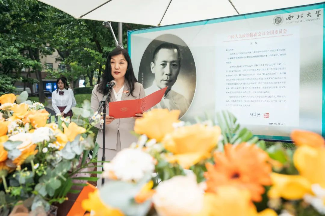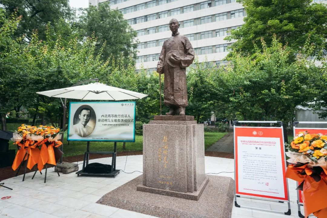 西北联大与大学文化研究院院长姚远为与会嘉宾和师生阐释了雕像碑文,二百余字浓缩了徐诵明先生波澜壮阔的人生和重要的成就。