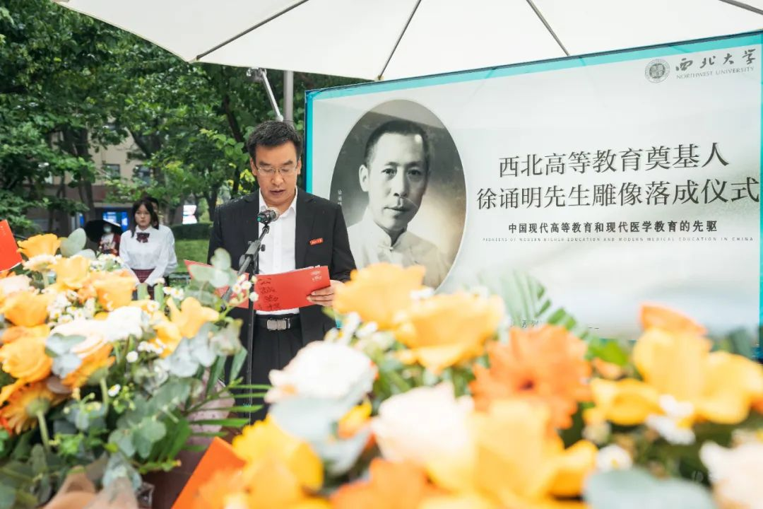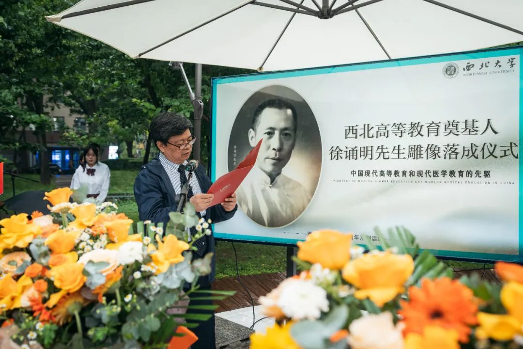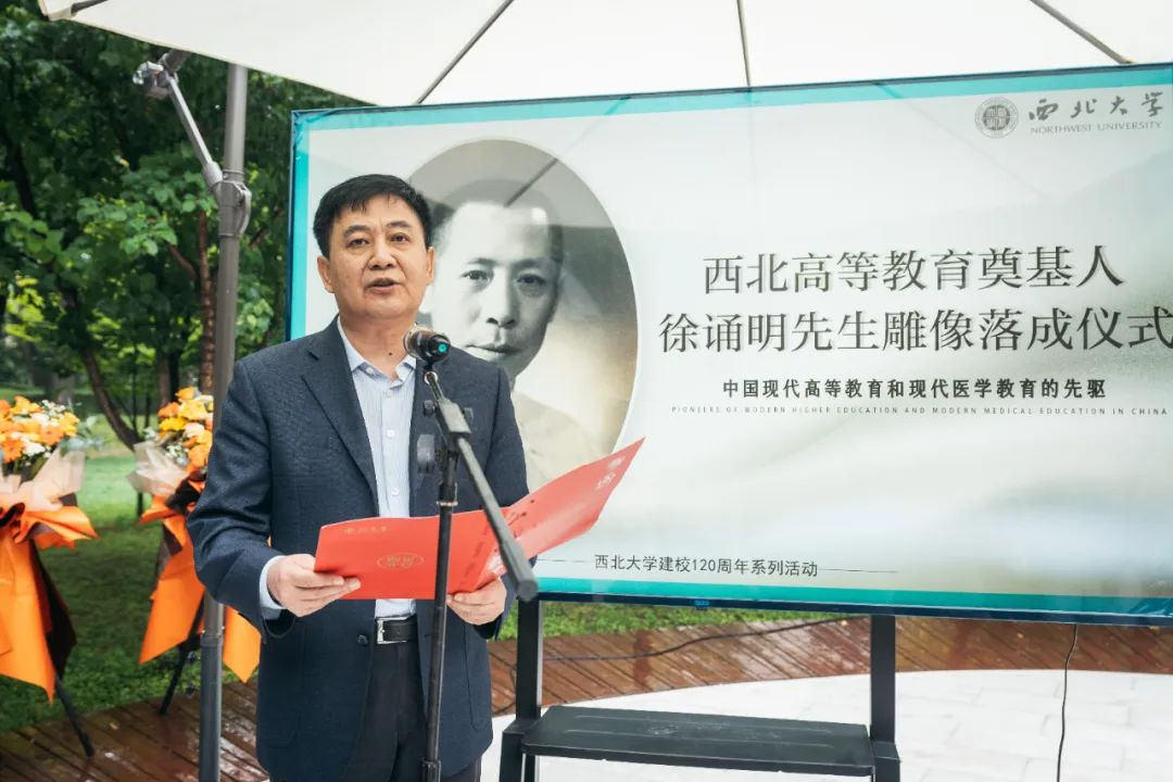 pg娱乐电子游戏官网入口党委书记王亚杰,徐诵明先生外孙、国家一级美术师徐冬冬,西安交通大学党委常委、医学部党委书记陈腾、pg娱乐电子游戏官网入口附属第一医院副院长邵景、浙江省新昌县委常委、统战部部长严岚,陕西省汉中市城固县委常委、宣传部部长田海燕共同为“徐诵明先生雕像”揭幕。仪式由校党委常委、副校长常江主持。