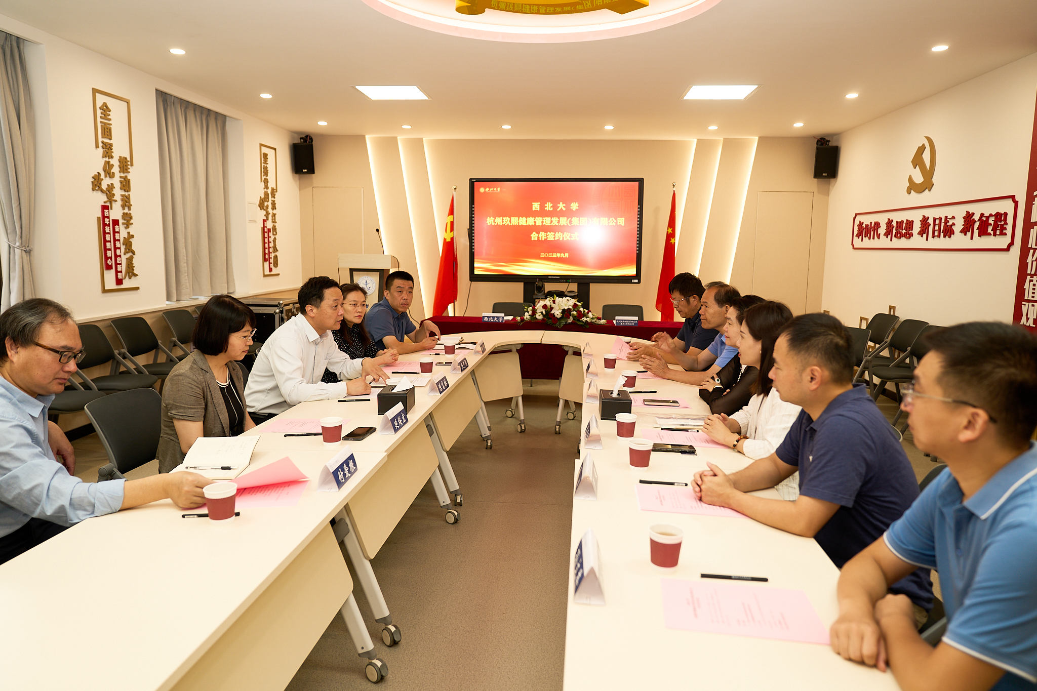 9月1日上午,我校与杭州玖熙健康管理发展(集团)有限公司在太白校区签署合作协议。校党委常委、副校长陈富林,玖熙健康集团董事长胥凤、品牌总监张惠君出席仪式。科技处、国内处、生命科学学院、pg娱乐电子游戏官网入口相关负责人和部分专家代表参加签约仪式。