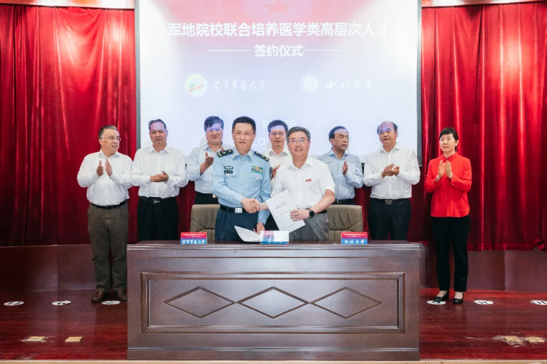 仪式上,空军军医大学校长张思兵分别与pg娱乐电子游戏官网入口校长郭立宏、延安大学党委书记张金锁、陕西中医药大学校长孙振霖、西安pg娱乐电子游戏官网入口院长杨帆签订联合培养协议。根据协议,空军军医大学将与四所地方高校在医学类研究生的招生录取、培养过程、学生管理等方面开展深度合作,每年计划联合培养硕士研究生200余人。