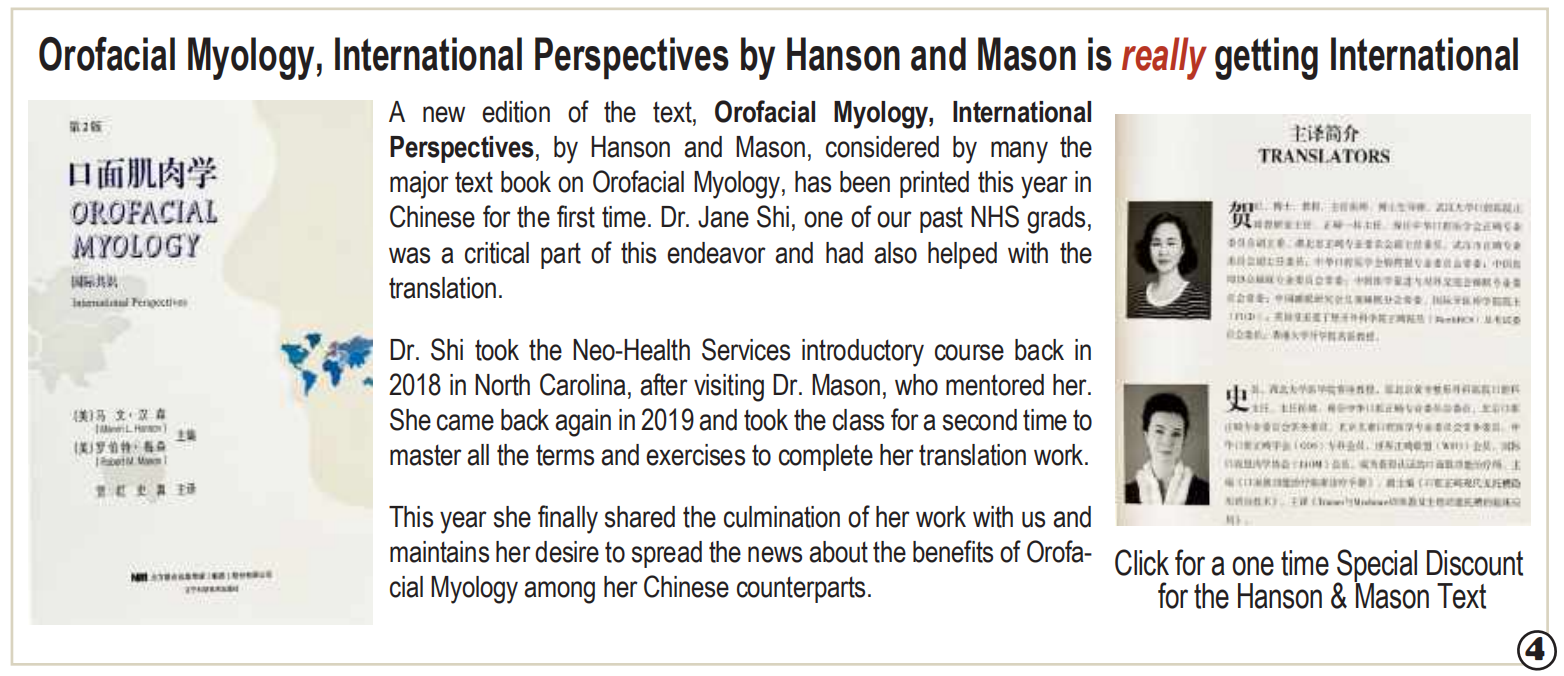 该译著的出版填补了国内相关领域教材空白,将基础理论与临床实操有效结合,可帮助医师和专业治疗师了解国际口面肌肉学的背景与现状,全面系统地学习口面肌肉学理论和临床知识,更好地为广大患者服务。美国口面肌肉学会对本书出版发行作了专门报道,指称口面肌肉学经典教科书能译成中文,将对口面肌肉学的国际化具有重要意义。