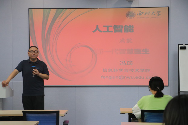 随着科技进步和社会发展,人工智能在医疗、教育、社会服务等领域发挥着日益重要的作用。为加强医学生对未来智慧医疗的认识,8月21日学院特邀请信息科学与技术学院副院长冯筠教授在太白校区9209教室作题为“人工智能成就新一代智慧医生”学术报告。“徐诵明医学卓越班”全体同学参加了本次报告,报告由pg娱乐电子游戏官网入口党支部(直属)副书记杨涛主持。