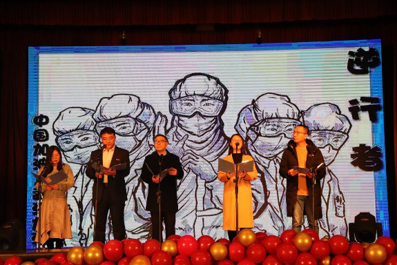 欣赏完民谣后,让我们来感受一下老师们的魅力。由杨涛、魏宁、孟庆彬、王静、李梦雨等老师带来的诗朗诵《山河无恙》,抑扬顿挫,气势磅礴,词句间歌颂着祖国的大好河山,致敬着伟大的抗疫英雄们。