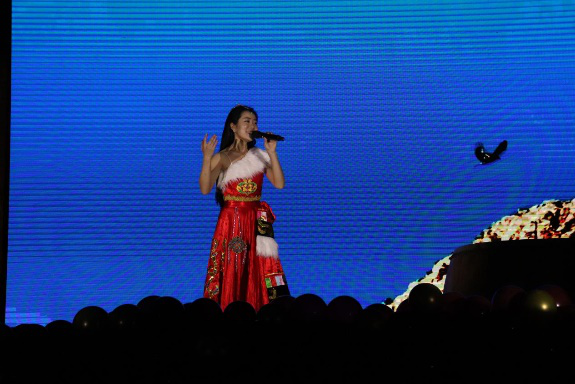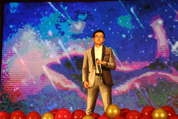 接下来,安伟东老师带来了歌曲《爱就一个字》,歌曲甜蜜,曲调温柔,尽显铁汉柔情,带动了全场的氛围。