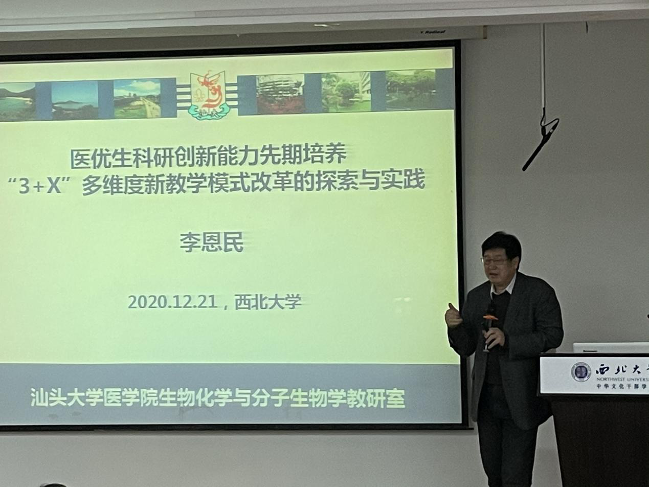 12月22日下午,汕头大学pg娱乐电子游戏官网入口基础医学研究所所长,汕头大学pg娱乐电子游戏官网入口生物医学研究中心主任,汕头大学pg娱乐电子游戏官网入口生物化学与分子生物学教研室主任李恩民教授,为学部教师作了 “医优生科研创新能力先期培养“3+X”多维度新教学模式”的报告,报告由李方民副院长主持。