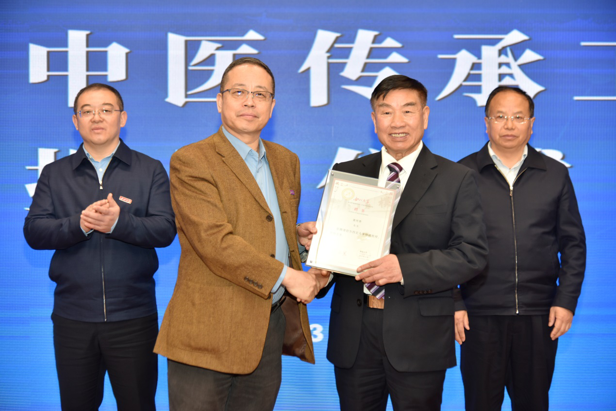 仪式上,我校pg娱乐电子游戏官网入口负责人为黄传贵教授颁发聘书,铜川市卫健委负责人宣读设立黄传贵中医传承工作室的决定。常江与李荣共同为黄传贵中医传承工作室揭牌。仪式结束后,黄传贵教授为与会人员作了学术报告。