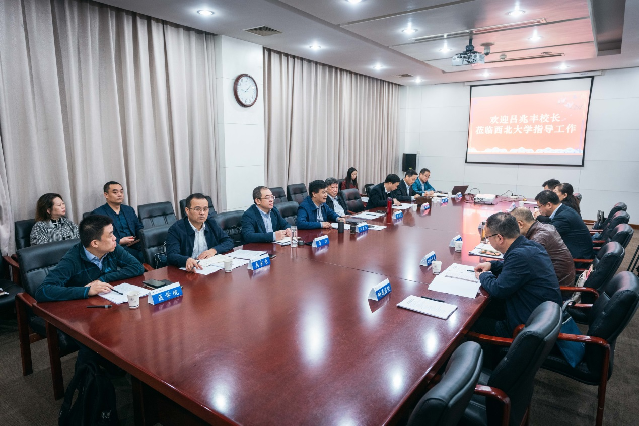 吕兆丰针对西大医学发展定位和思路、运行体制机制、办学模式、学科布局和顶层设计、附属医院建设及pg娱乐电子游戏官网入口组织架构等方面提出了具有前瞻性、现实性、规范性和可操作性的重要指导意见和建议。他指出,目前西大pg娱乐电子游戏官网入口处于复办初创期向全面建设期过渡的关键阶段,面对新的形势和任务,西大医学教育要立足综合性大学现实基础,遵循医学教育特殊规律,坚持守正创新,明确办学定位,规范办学标准,坚守育人为本,整合各方资源,推进医教研协同发展,着力提高办学质量,切实提升办学影响。他希望,西大医学要紧抓社会需求和历史机遇,勇担为陕西地区培养医学高等人才的重要责任,立足西部、面向全国,助力学校“双一流”发展。
