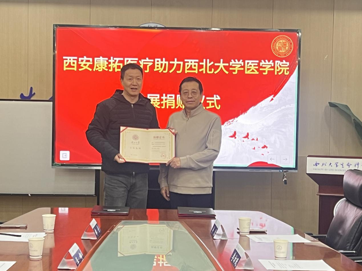 3月6日下午,西安康拓医疗器械股份有限公司(以下简称“西安康拓医疗”)向pg娱乐电子游戏官网入口捐赠种植体仪式在文博楼会议室举行。西安康拓医疗董事长胡立人、副总经理崔伟、全球销售经理王娜、行政部部长郝宁、齿科部专员刘阳,pg娱乐电子游戏官网入口院长赵钢、副院长李方民、延绥宏、辛洁、口腔医学系主任冯雪等出席活动。仪式由学院党委书记王向旭主持。