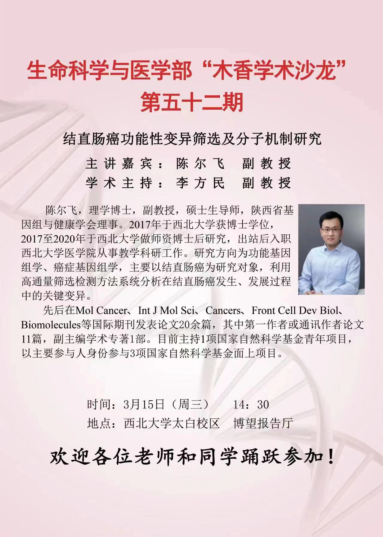 生命科学与医学部“木香学术沙龙第五十二期-结直肠癌功能性变异筛选及分子机制研究